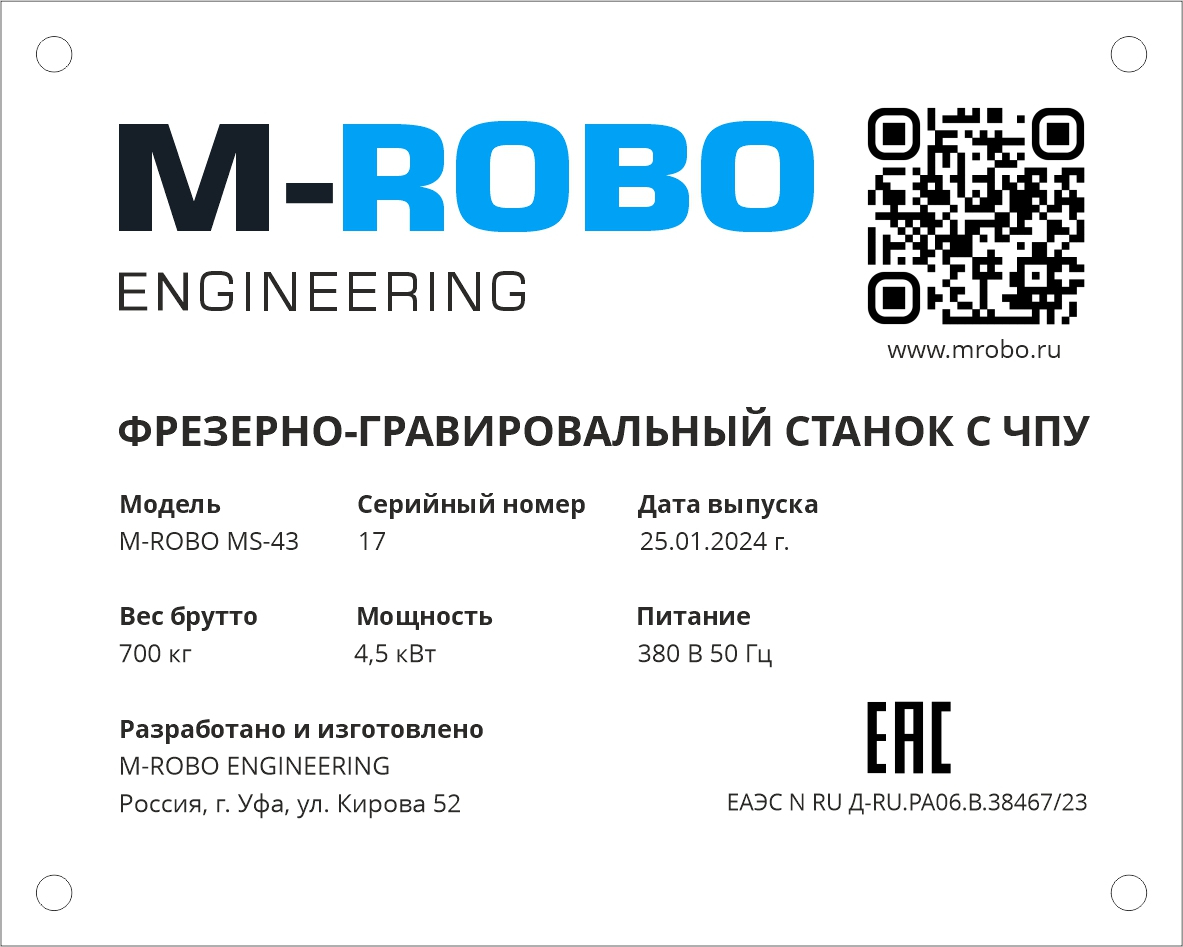 Гарантия на станки M-ROBO ENGINEERING составляет 2 года с момента пуско-наладочных работ.